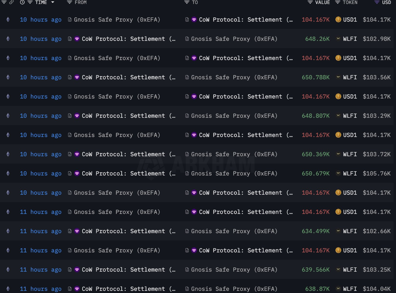 有人创建了一个新的钱包“0xEFA1”,并在过去 3 天内花费了 2500 万美元($USD1)以 0.1508 美元的价格购买了 1.6579 亿$WLFI