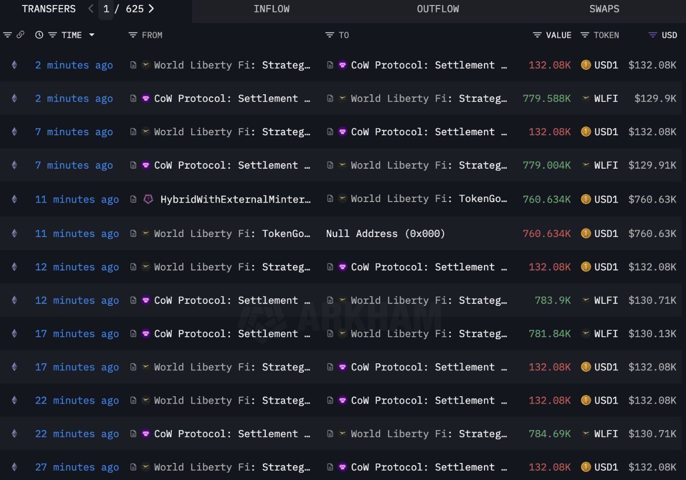 从链上数据来看,WLFI项目近期出现了密集且大额的资金活动,这通常指向一个核心目的:价格支撑与市场信心管理。