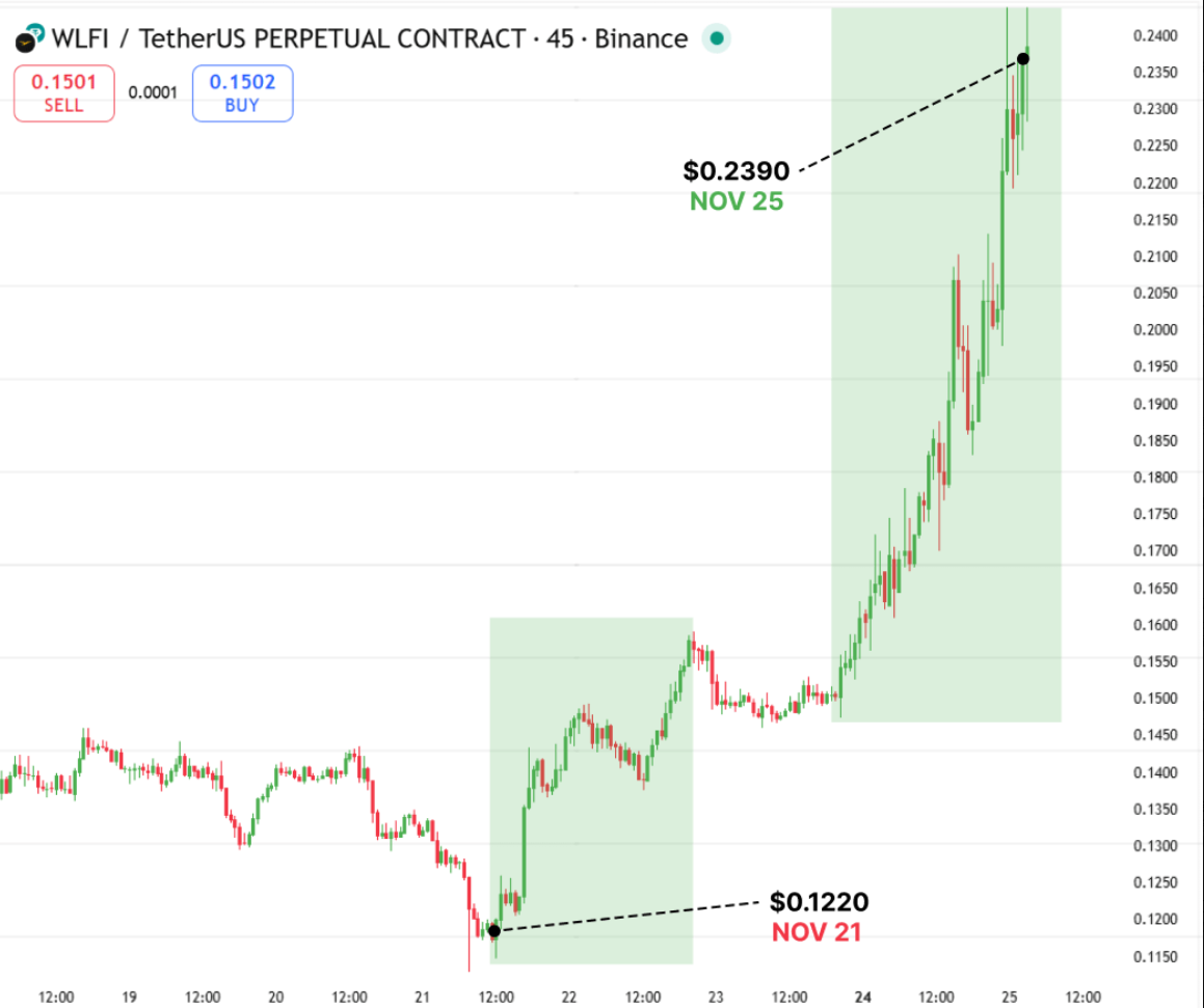 如果$WLFI突破 0.16 美元至 0.17 美元的区间,那么跃升至 0.30 美元并非不切实际——尤其是对于一枚低于 0.20 美元的硬币而言。